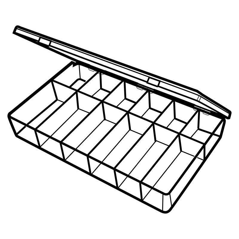 10 1/2" x 6 3/16" x 1 9/16" (26.67 X 15.72 X 3.97 cm) A-Series 6662CB (A612) twelve compartment box has a distinct stout look with square corners and true 90° walls. Still a popular pick with customers from many industries. From crafts to electronics and more, these crystal clear containers offer easy access and are great for organized storage.