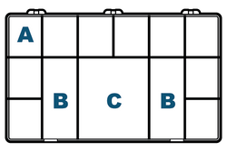 10 1/2" x 6 3/16" x 1 9/16" (26.67 X 15.72 X 3.97 cm) A-Series 6664CB (A613) thirteen compartment box with hinged lid has a distinct stout look with square corners and true 90° walls. Still a popular pick with customers from many industries. From crafts to electronics and more, these crystal clear containers offer easy access and are great for organized storage.