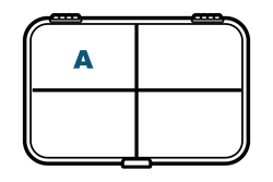 The four compartment Mighty-Tuff cellulose propionate box stands up to harsh industrial and institutional environments. It features a double-metal hinge for strength and offers excellent impact and chemical resistance.