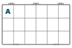 The 10-1/2" x 6-3/16" x 1-9/16" (26.67 x 15.72 x 3.97 cm) 600 Series Eighteen Compartment Conductive Box reduces electrical resistance and dissipates static-charge buildup to alleviate electrostatic discharge (ESD).