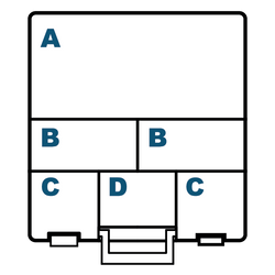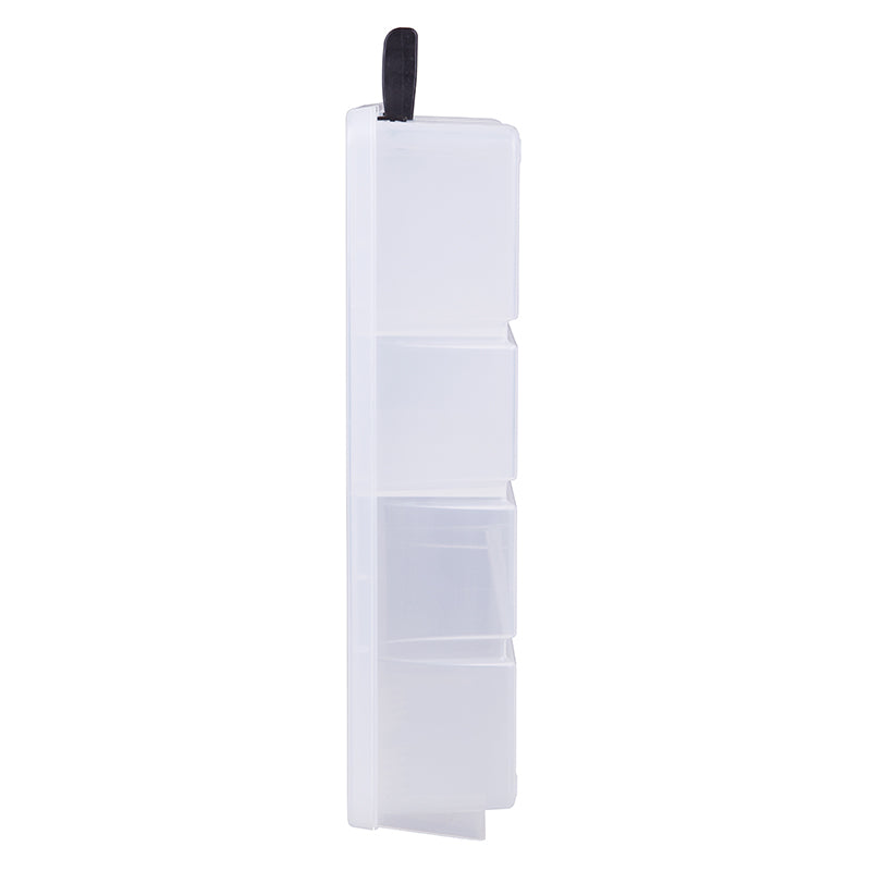 The 13 1/8" x 13 1/8" x 3" (33.34 x 33.34 x 7.62 cm) 6996TE (T9006) Deep Super Satchel box has six fixed, extra-deep compartments, is stackable and made from acid-free translucent polypropylene.